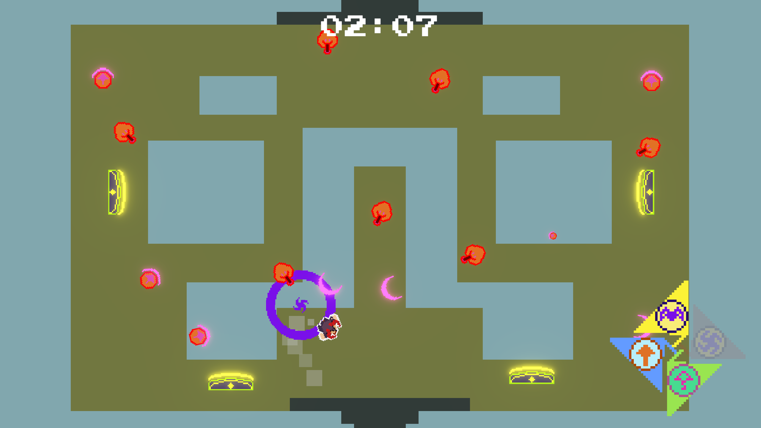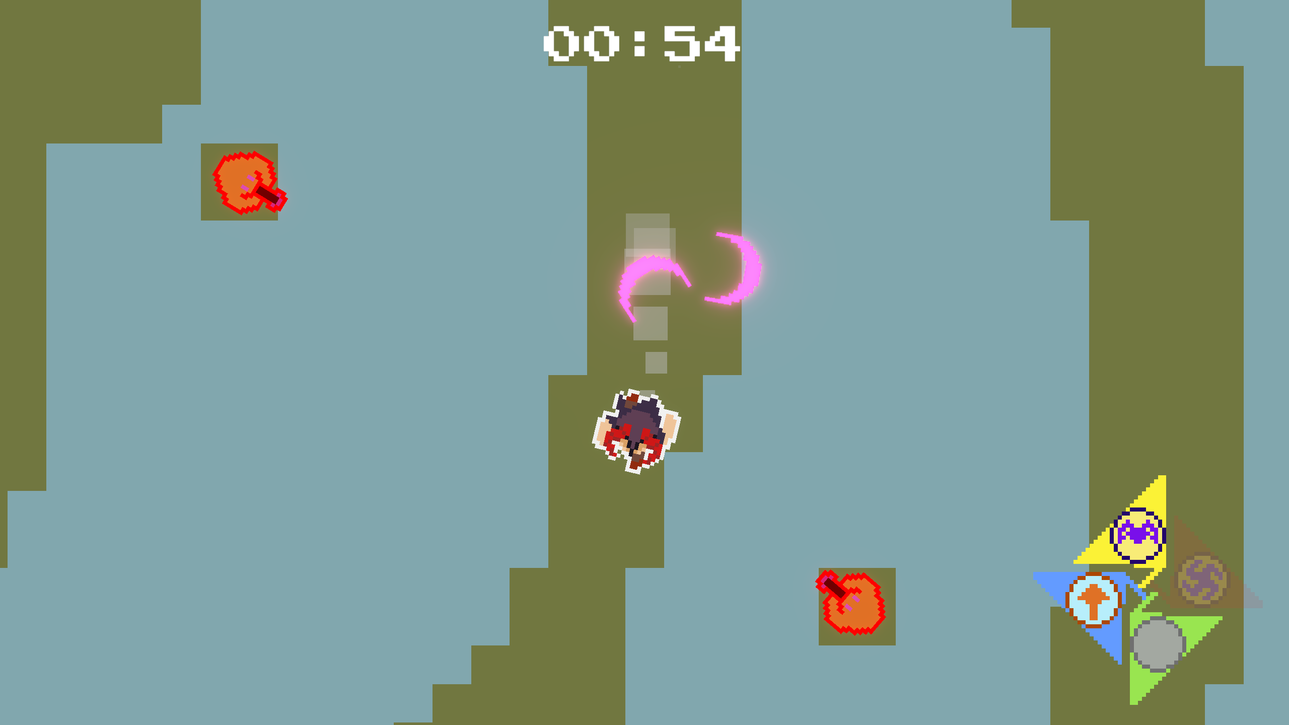 A top-down roguelite game with an important focus on movement, speed and momentum. The game consists of a succession of levels where the goal is to reach the exit portal to proceed to the next one. Different types of enemies are encoutered along the way, and they can be either defeated with progressively unlocked abilities, or completely ignored.